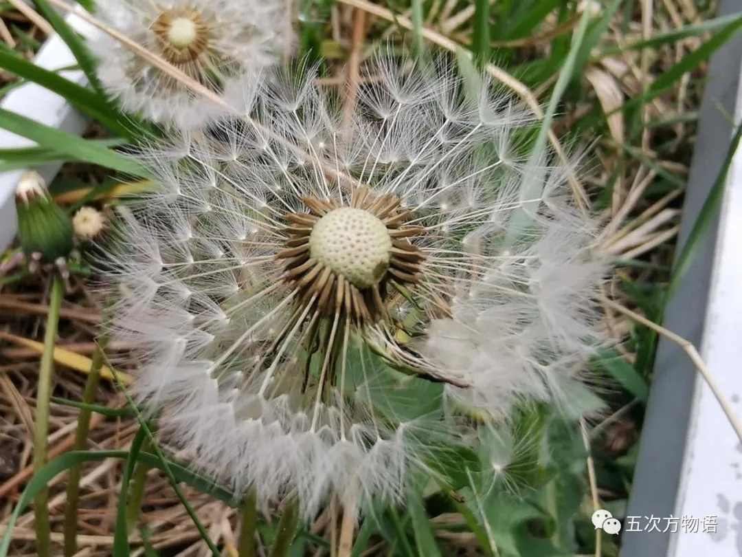 菊科植物的果实都是不开裂的瘦果。无须对“瘦果”做详细解释,观察一下“葵花籽”即可,基本结构都那个德行,瓜子壳是外果皮,葵花仁才是真正的种子。蒲公英果实和“葵花籽”最显著的不同之处,就是它的上端有结构精巧的冠毛,可以“好风凭借力,送我上青云”,以达到开枝散叶的目的。轻轻一吹,一朵朵轻盈的微型降落伞便四处飘散,备受儿童喜爱。