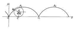动圆周上点M的轨迹.取定直线为x轴(水平位置),设动点M的初始位置为原点O,切点C(rφ,0),则: