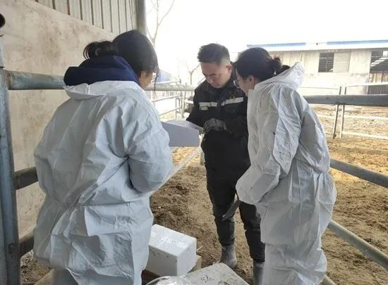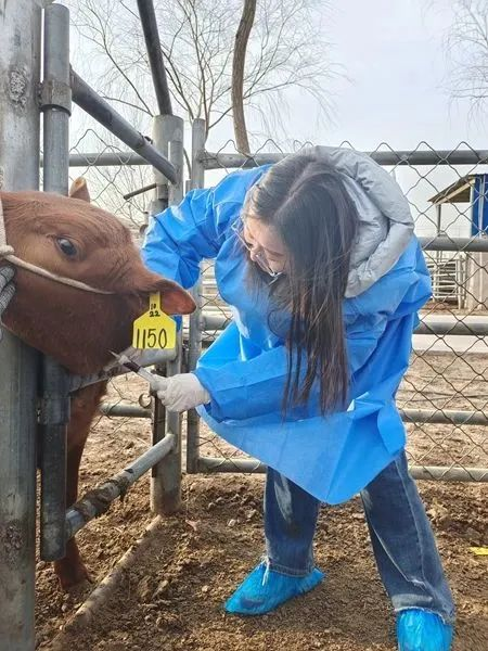 2月21日,科技小院专项研究生闵胜男给养殖场的肉牛采血。