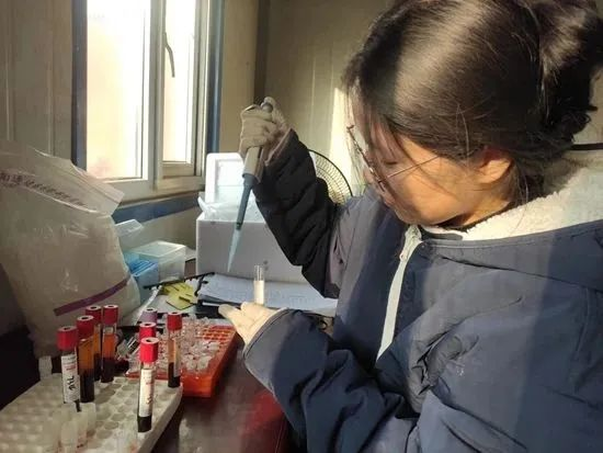 2月16日,2022级硕士研究生王慧莉把在科技小院所采的牛血液样品做离心处理