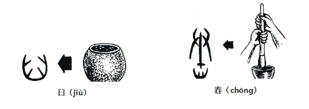 杵臼(chǔ jiù)是人类最古老的农具之一。由一根木杵(舂棒)与凹形臼组成用于谷物脱壳、药材加工的工具。“臼”(jiù)这个字的本义是描述一种中部下凹的器具,专为舂米之用。舂米的“舂”(chōng),这是字就是描绘杵臼加工粮食的过程。