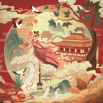 中秋节最早源于古代的“秋夕祭月”,是庆祝农作物丰收、感谢月神(嫦娥)保佑的重大节日。相传嫦娥飞上月宫后,非常孤单,一位神仙便派了一只洁白无瑕、灵性十足的“玉兔”到月宫陪伴她。玉兔拿着玉杵捣药,成蛤蟆丸,服用此药丸可以长生成仙。古人赏月时,看到月亮上的阴影斑驳,其形状很像一只跳跃的兔子,便产生了“月中有兔”的浪漫想象。