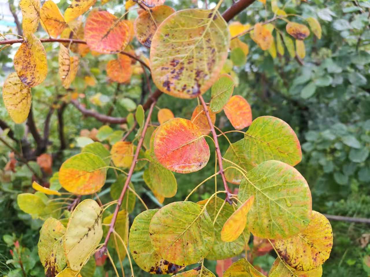 要区分黄栌和枫树,首先得看清黄栌的“真面目”。从叶片来看,黄栌的叶子是典型的“圆形掌状”,像一把小巧的团扇,边缘光滑无锯齿,叶片质地较薄,表面有细微的绒毛。仔细观察会发现,黄栌的叶柄较短,叶片紧紧簇生在枝条顶端,远远望去,整棵树就像被无数红色的小扇子挂满,显得格外灵动。