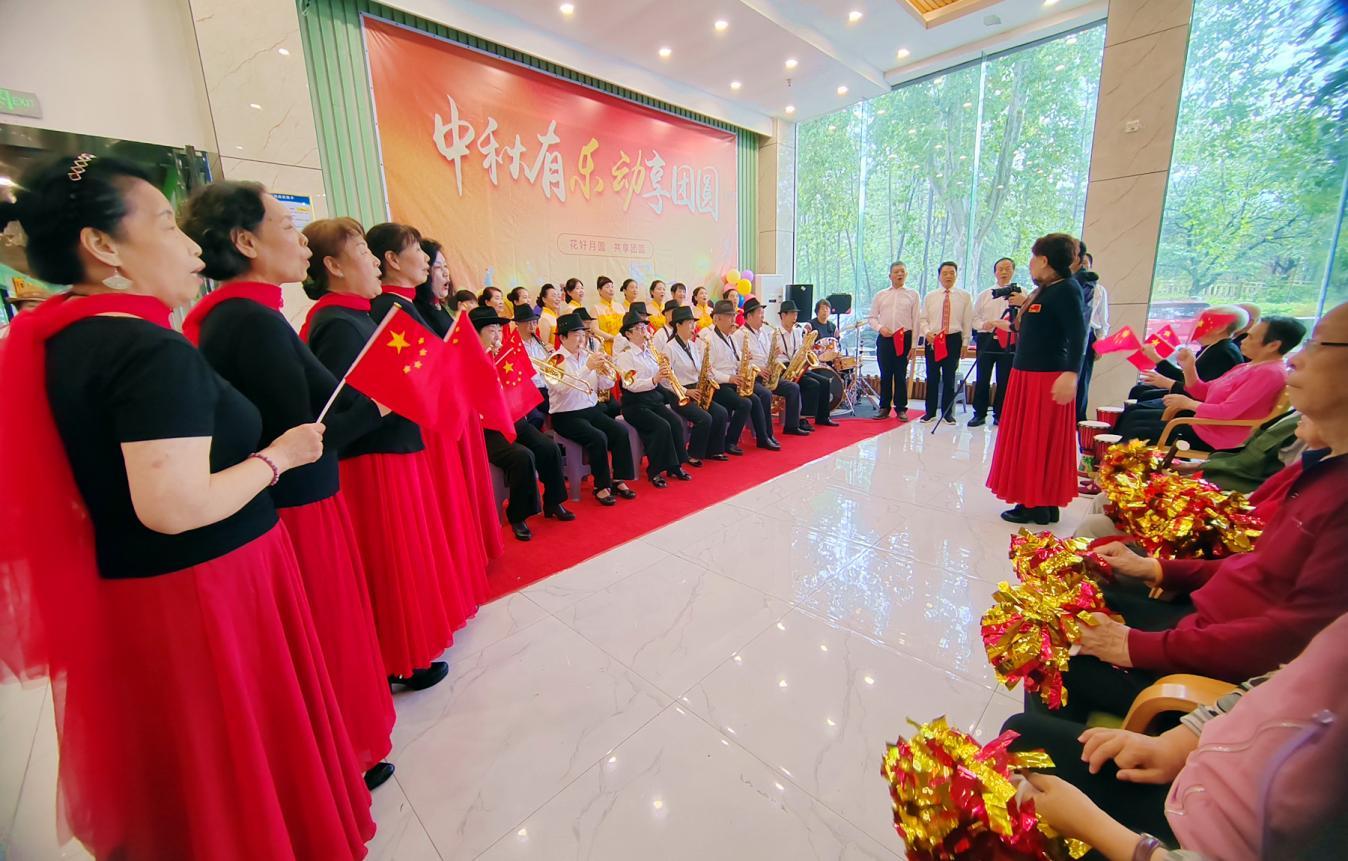 随后,文艺汇演正式拉开帷幕。舞钢市天籁艺术团的表演者们早已整装待发,大合唱《歌唱祖国》《我的祖国》率先登场,激昂的歌声瞬间点燃现场氛围;演员们身着艳丽服饰,用灵动舞姿演绎节日的喜庆;双舞管乐团伴奏下,王秀兰演唱的《母亲》深情动人,市一幼小朋友的舞蹈《向快乐出发》活泼可爱,陈小丽领舞的非洲鼓《战马》节奏铿锵,一个个精彩节目接连上演,赢得老人们阵阵喝彩。当《我和我的祖国》旋律响起,老人们纷纷挥动手中的小国旗,与表演者齐声合唱,歌声、掌声交织成最真挚的家国祝福,老人们的脸上满是幸福的笑容。