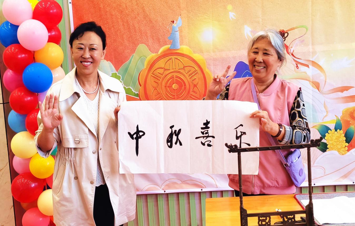 现场最动人的一幕,当属82岁退休高级教师、万福老年科普大学“书法达人”王春瑰老人的即兴创作。她挥毫泼墨,“中秋喜乐”四个大字苍劲有力,墨香里满是节日的祝福。随后,其女儿孙波老师登台,以一首《草原月色美》与这份笔墨情相和——她的歌声清亮如月光洒满草原,婉转似晚风轻拂草甸,既唱活了歌中辽阔悠远的景致,更传递出笔墨间沉静温润的心境。听觉与视觉的完美融合,让在场众人都沉浸在这份雅致又暖心的氛围中。