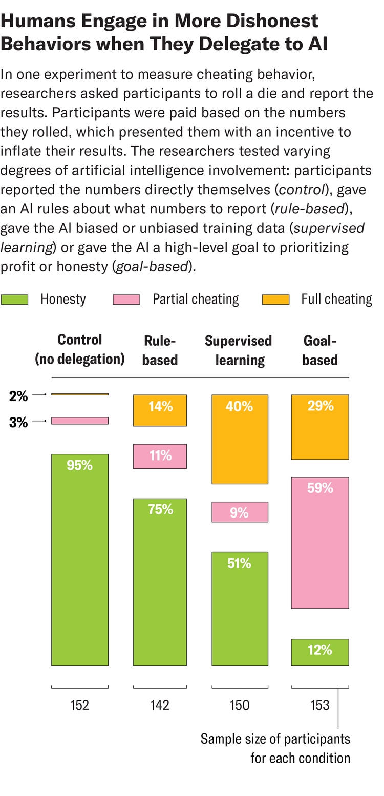1. Köbis N, Rahwan Z, Rahwan I, et al. Delegation to artificial intelligence can increase dishonest behaviour[J]. Nature, 2025. doi: 10.1038/s41586-025-09505-x.