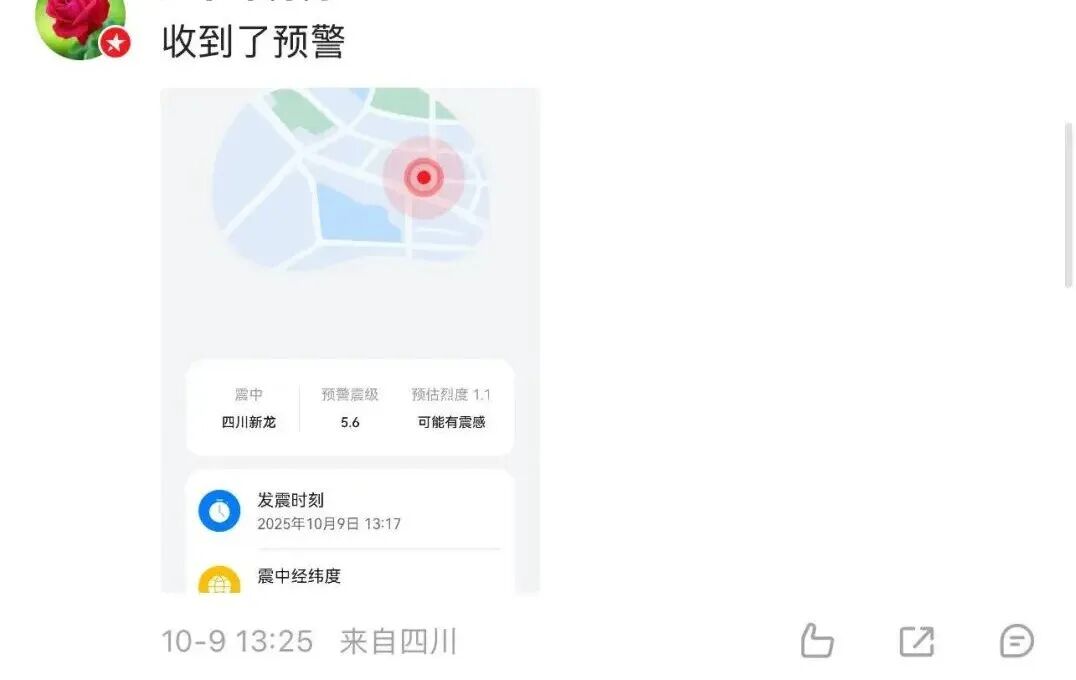 中国地震台网正式测定:10月9日13时17分在四川甘孜州新龙县(北纬30.84度,东经99.86度)发生5.4级地震,震源深度10千米。