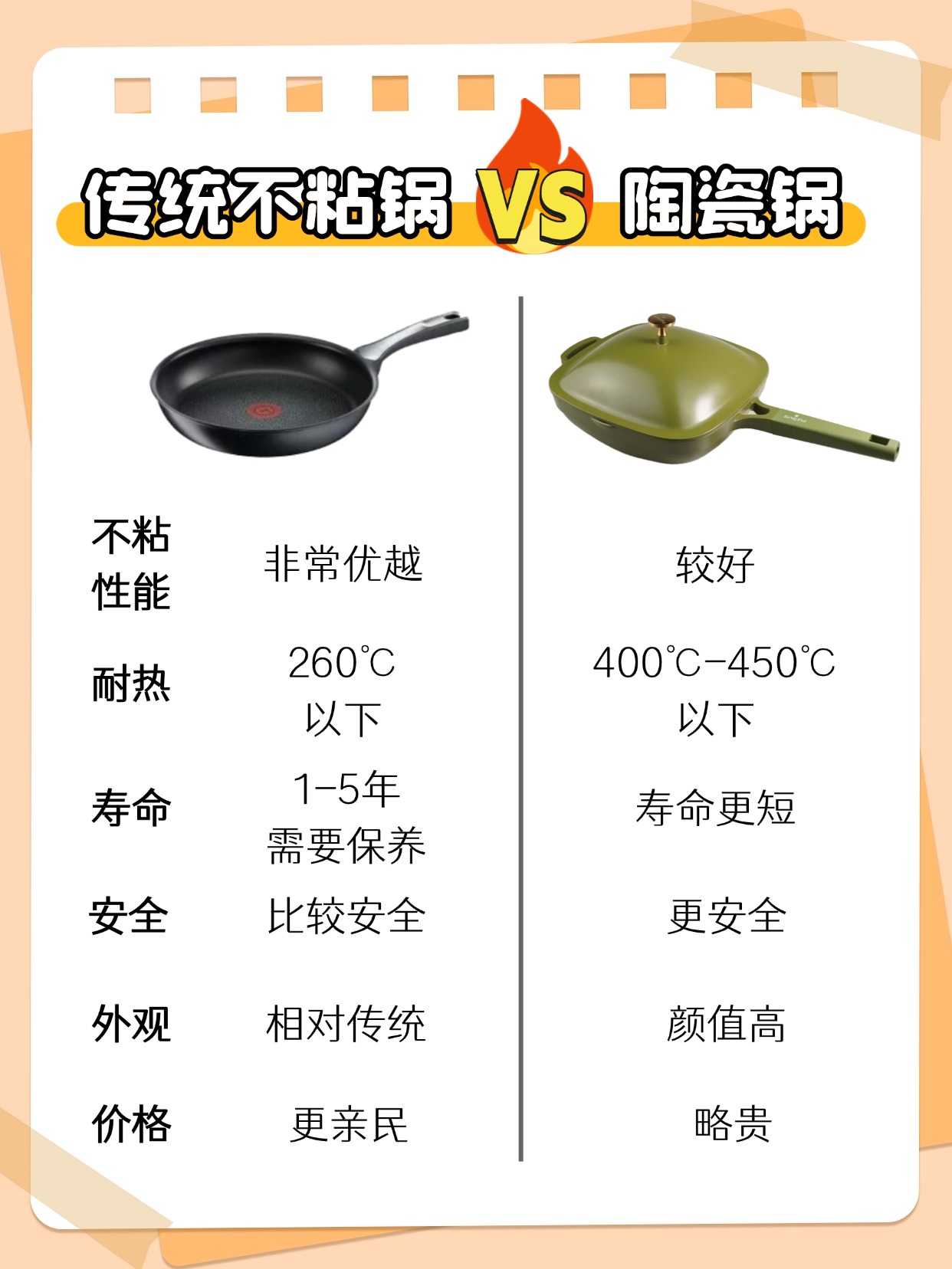 相比于特氟龙材料,陶瓷锅不粘性能稍逊一筹,寿命也会短一些,不过颜值超高,而且更耐高温✨!!这下就算是不小心会把锅烧了的“炸厨房”选手也不怕啦。