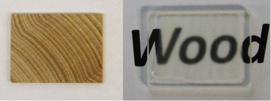处理前后的“木头”透光性对比(图片来源:Advanced Materials)