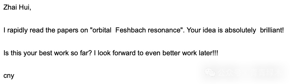 35年前,我有幸作为葛墨林教授与杨先生联合培养的研究生,在美国期间曾具体受教于他,每周都能得到先生的悉心指导。在美国期间,他为我指出了几个研究方向——从宏观量子效应与退相干,量子纠缠与鬼成像相关问题,到量子光学、冷原子及玻色-爱因斯坦凝聚研究——如今均已开花结果:其中第一个方面就是今年诺贝尔物理学奖密切相关的,其他方向的进展也成就了后来的诺贝尔奖工作,例如贝尔不等式验证的突破、激光冷却冷原子,而玻色-爱因斯坦凝聚研究正如先生1992年所预言,成为近30年来物理学的主流方向,其深远影响远超他当年“未来20年”的判断。先生对科学趋势的深邃洞察,至今想来仍令人震撼。