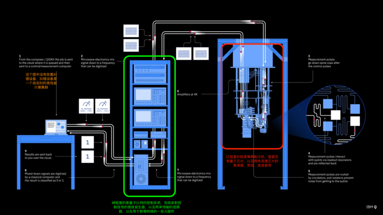 IBM Q 量子计算机架构图,我们可以在图中找到我们所述的组成部分