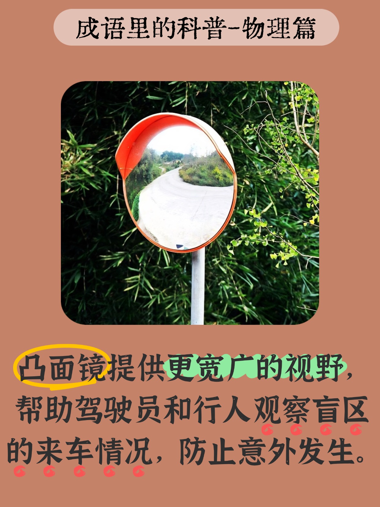 比如汽车的后视镜和侧视镜就被故意设计成凸起的样子,它能够为驾驶员提供比平面镜更宽广的后方视野,有效减少盲区,提高行车安全。在急转弯、十字路口或停车场出口等视线受阻的地方,也会安装大型凸面镜,帮助驾驶员和行人观察盲区的来车情况,防止意外发生。