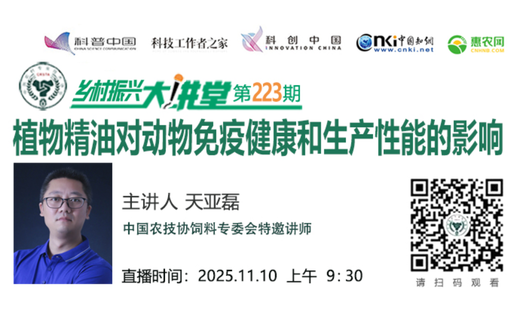 乡村振兴大讲堂第223期——植物精油对动物免疫健康和生产性能的影响