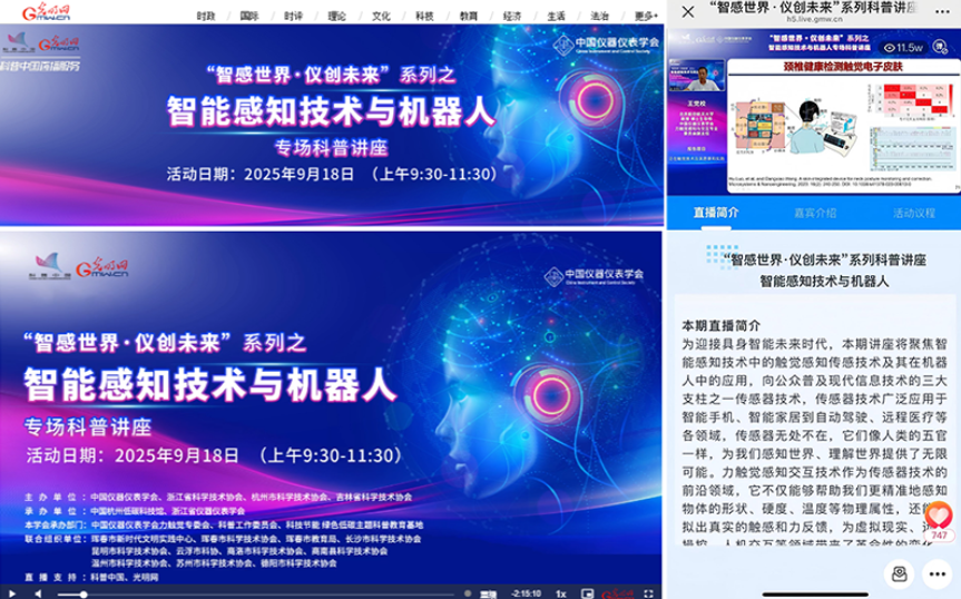 “智感世界·仪创未来”主题系列智能感知技术与机器人专题科普讲座直播活动顺利举办