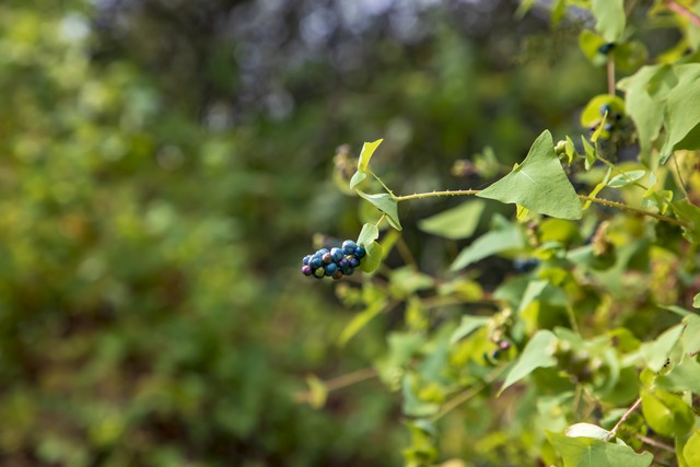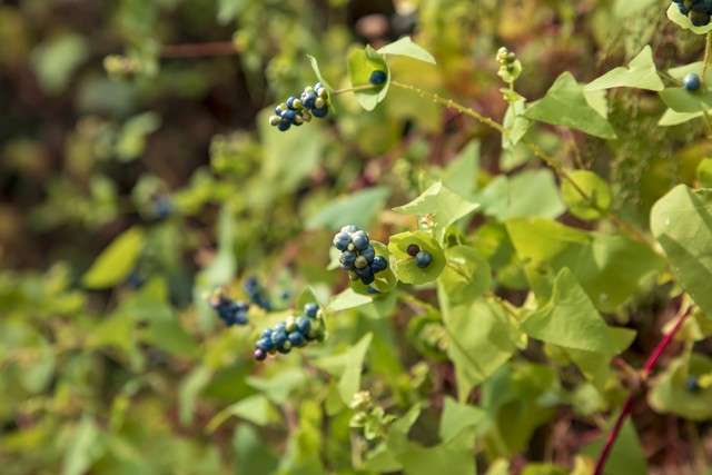 2022年9月22日,吉林省吉林市松花江畔自然生长的杠板归结出了蓝莓似的果实。