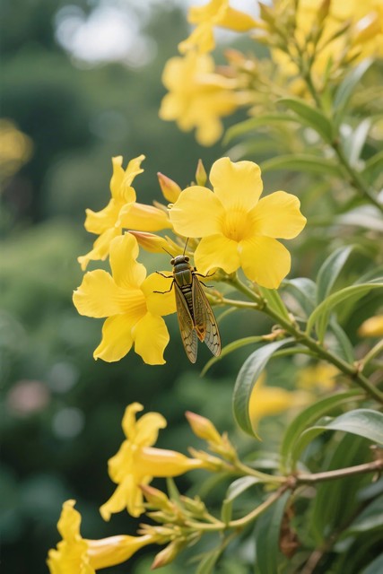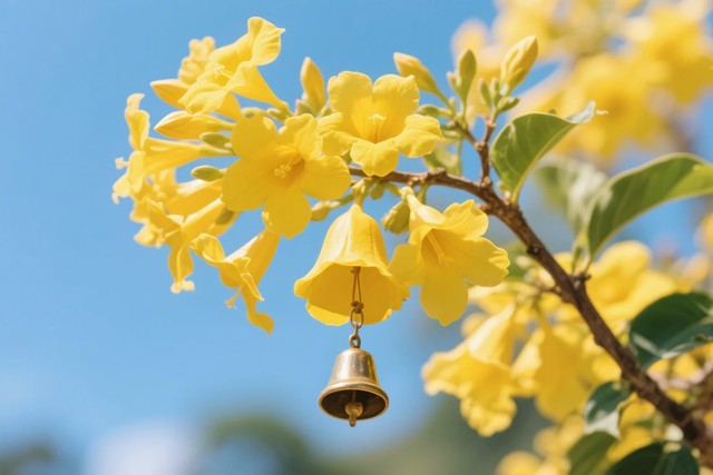 黄色花卉与铃铛的自然画面,铃铛,枝叶