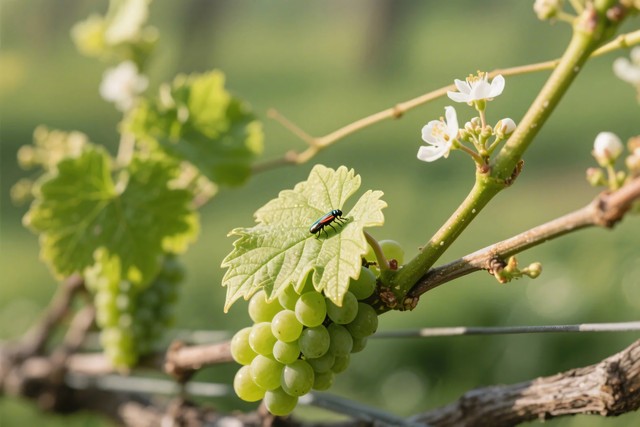 葡萄藤与小昆虫的自然场景,藤蔓,花朵