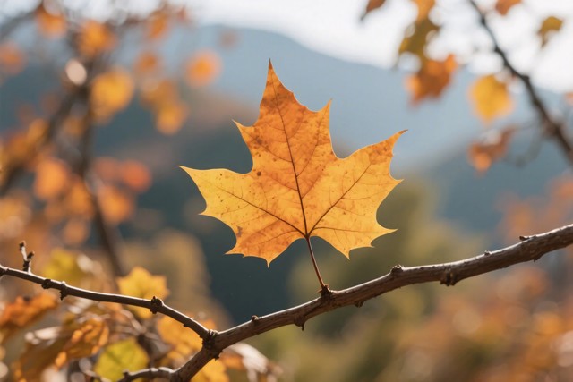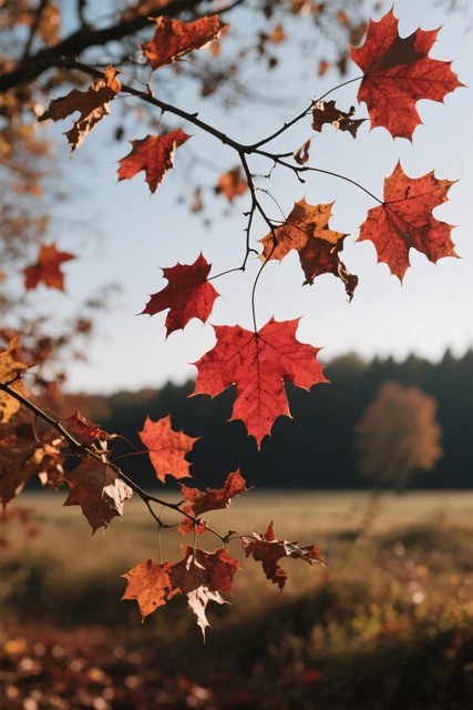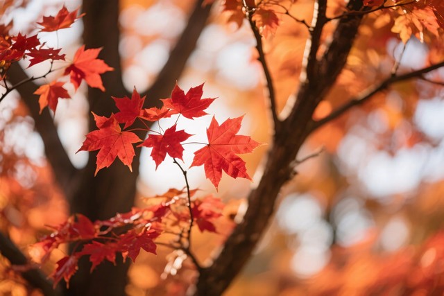 秋日枝头的鲜艳红枫叶,树枝,自然
