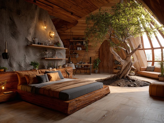 现代简约浴室设计自然元素与木质浴缸的完美融合
