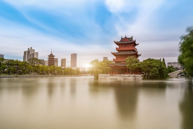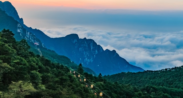 江西省九江市庐山风景区黄昏暮色含鄱口景点自然景观