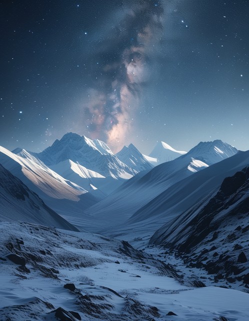 西藏的雪山自然风光,雪山背景,雪山下的银河星空