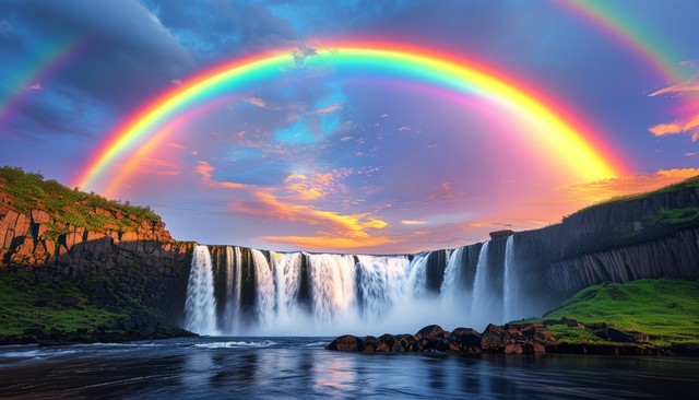 绚丽彩虹下的瀑布美景