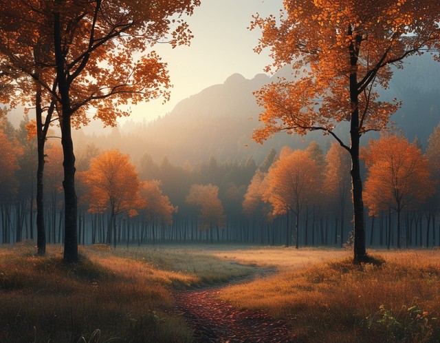 秋天早上森林的美景