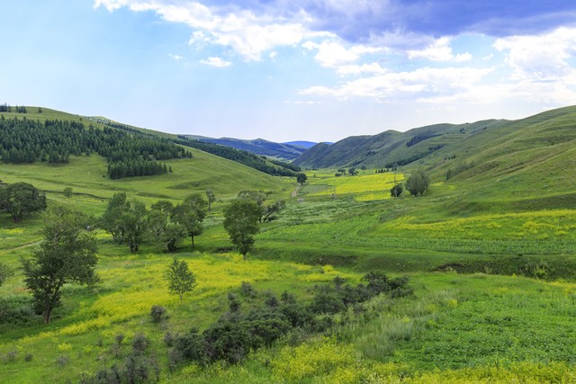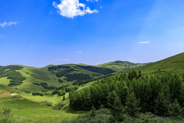 内蒙古呼和浩特市新城区大青山国家级自然保护区自然风光的全景图
