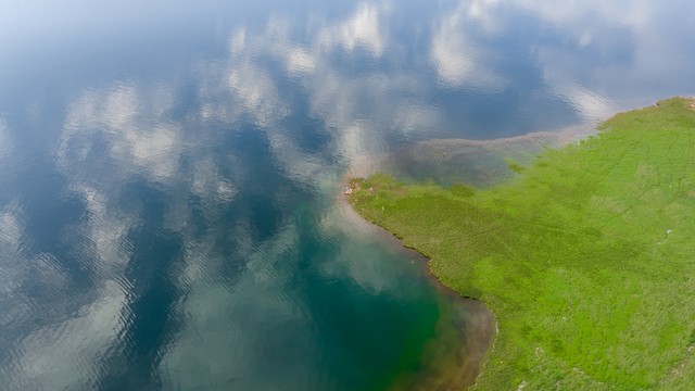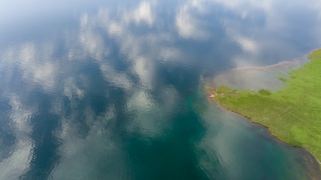 湖泊河流水面倒影绿洲天空云朵自然风景背景