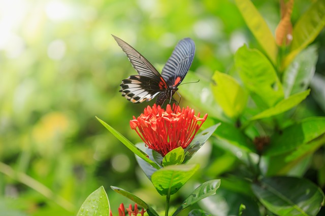 红花上的黑色蝴蝶