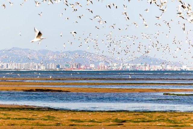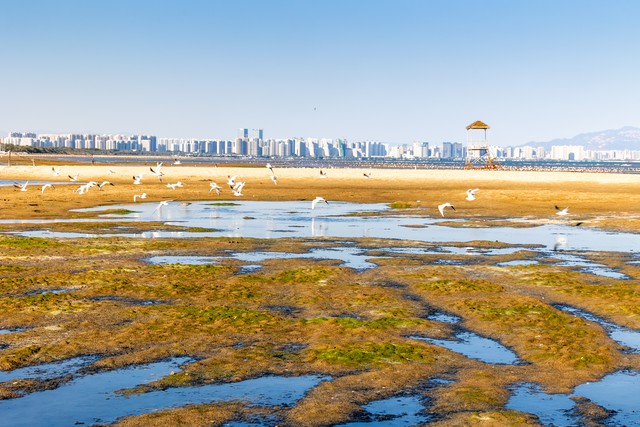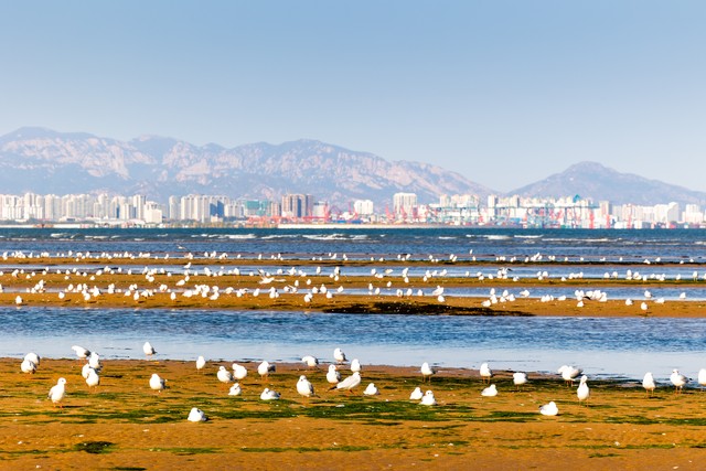 秦皇岛北戴河鸽子窝湿地七彩滩涂