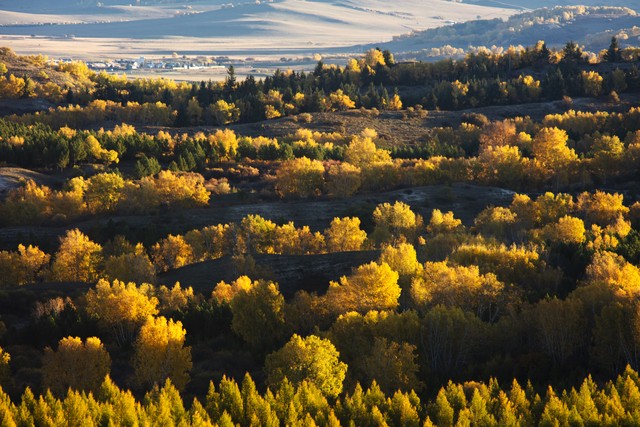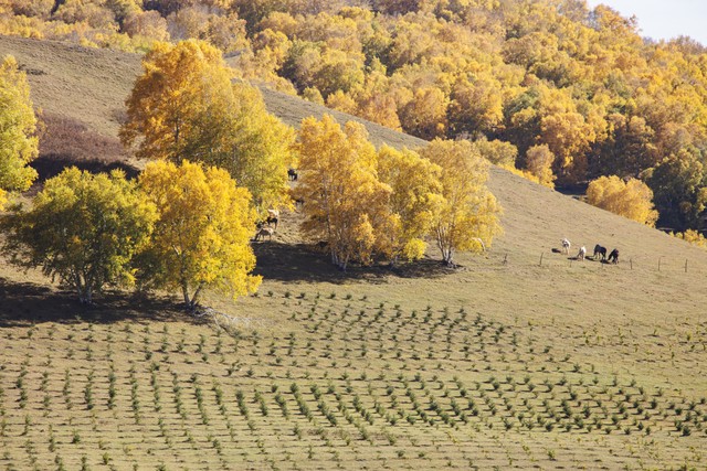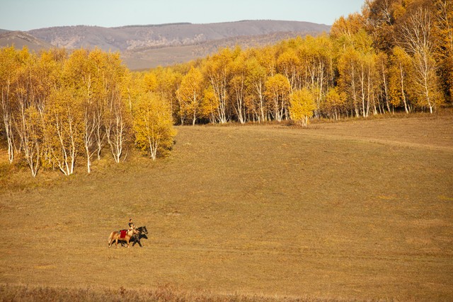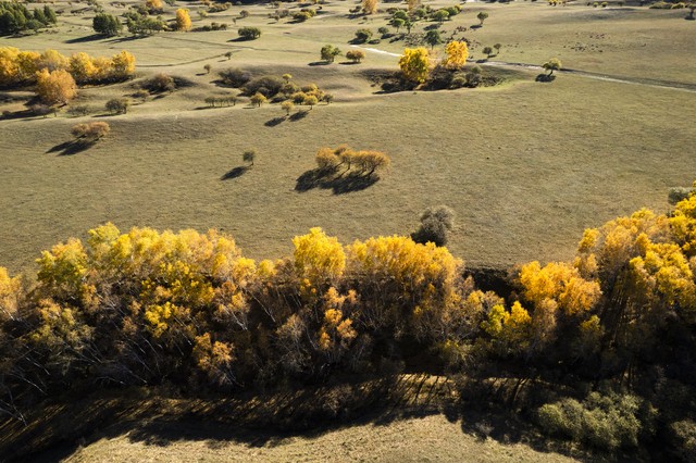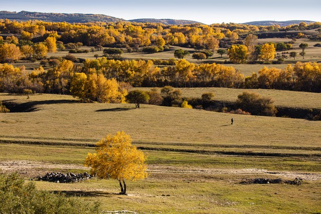 中国内蒙古呼伦贝尔市额尔古纳市中国最美边防公路卡线秋天自然风景