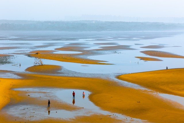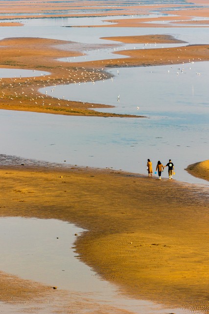 秦皇岛市北戴河鸽子窝公园七彩滩涂,沙浪