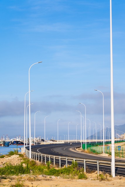 福建霞浦夏天东海海边海岛岛屿海岸线公路上的路灯自然风景