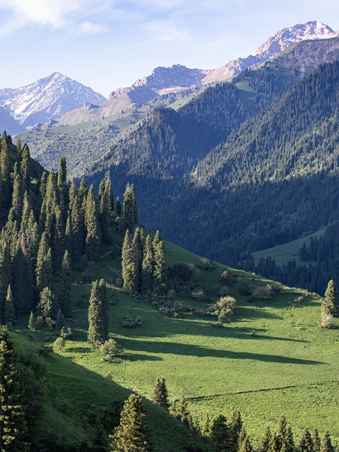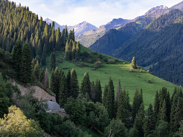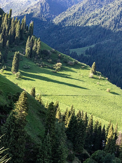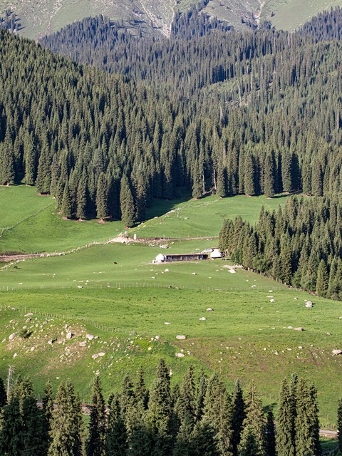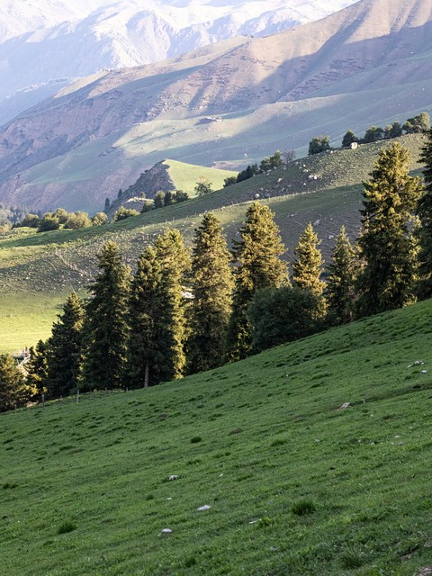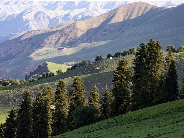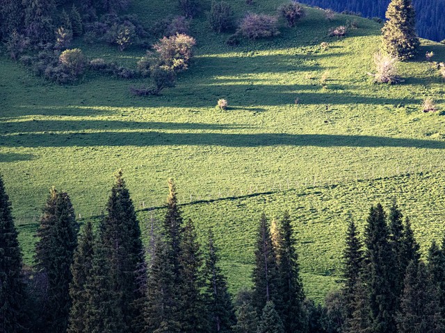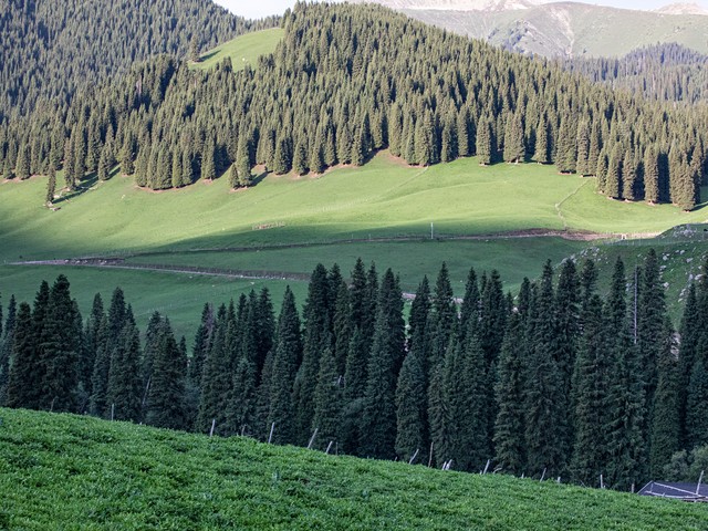 夏天新疆伊犁早晨,草原森林的大自然风景
