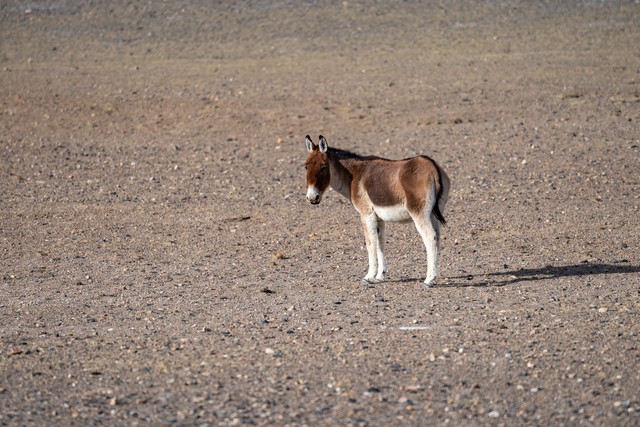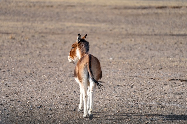 西藏阿里地区荒漠中的藏野驴孤独的背影