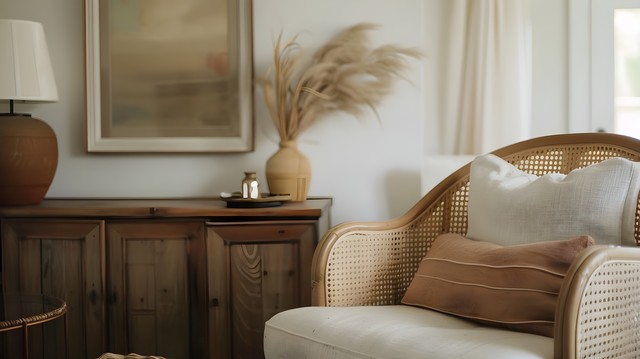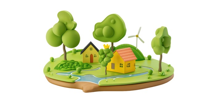"和谐共融:自然风光前的产品展台,展示与自然和谐共生的现代设计理念"