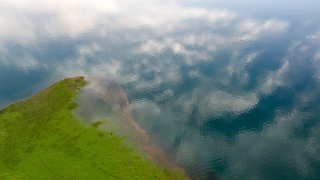 湖泊河流水面倒影绿洲天空云朵自然风景背景