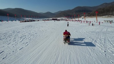 无人机航拍松花湖首届冬捕冬钓节开幕