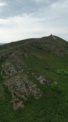 航拍锡林郭勒99号公路旁的成吉思汗瞭望山