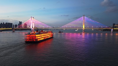 武汉长江二桥知音号江滩夜景繁华都市航拍