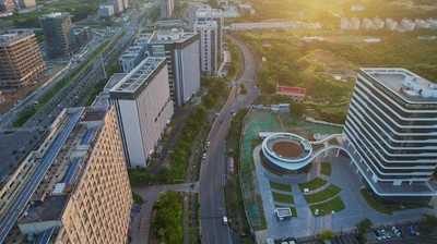 芜湖轨道交通2号线单轨列车穿行城市航拍