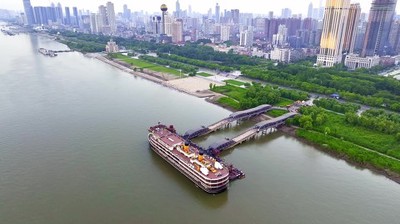 武汉长江二桥知音号江滩夜景繁华都市航拍