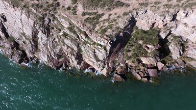 航拍青海湖断崖景区高原圣湖蓝天白云湖水