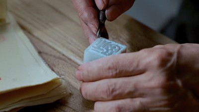 专家雕刻印章局部特写