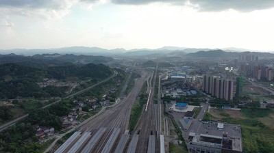 4K航拍动车驶出怀化南站