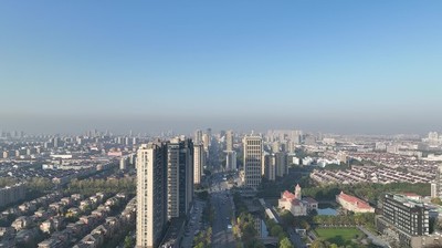 航拍桐乡振东新区城市风光