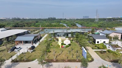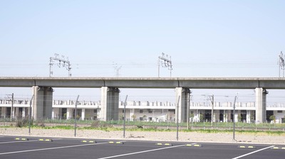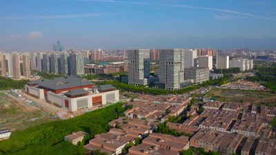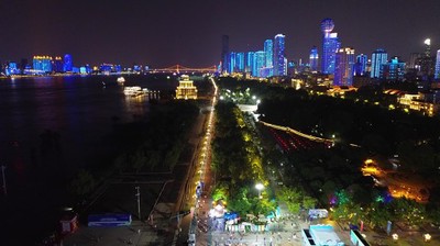 芜湖轨道交通1号线单列车驶过银湖航拍素材
