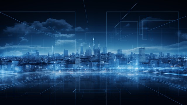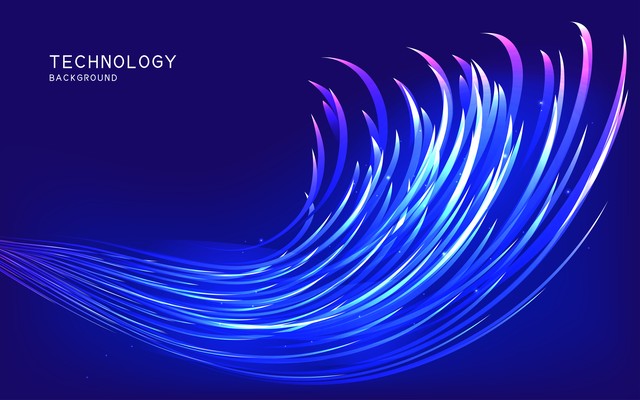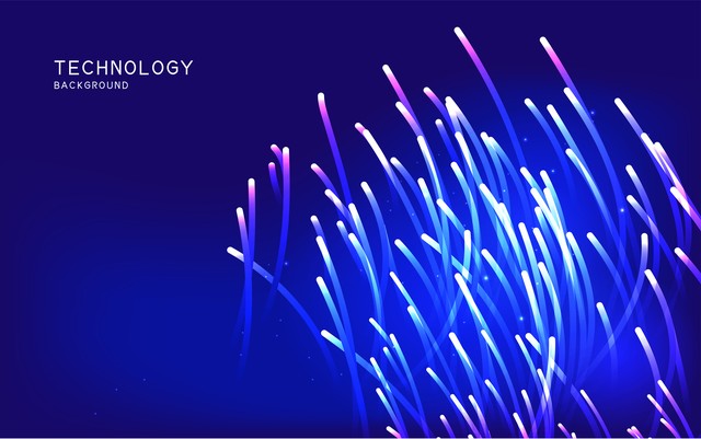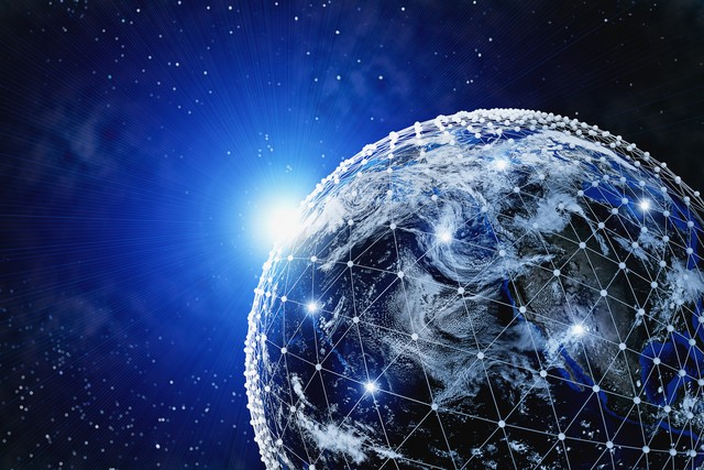 深蓝色星空中光线围绕地球组成网格的科技类背景图
