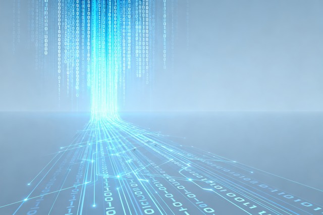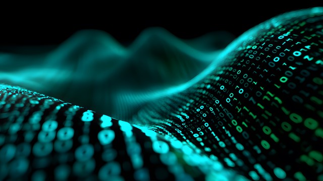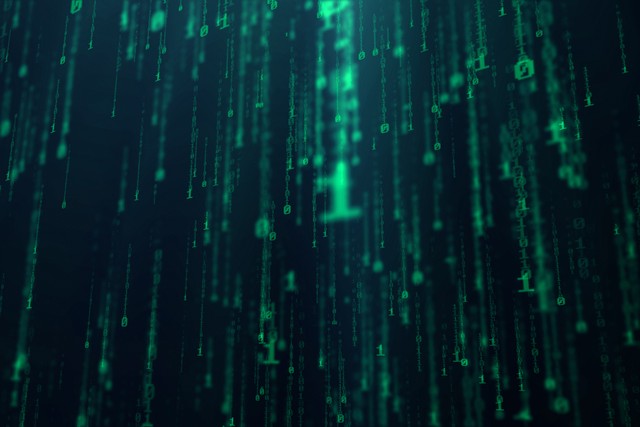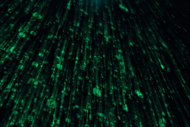 蓝绿色的黑客数字雨,二进制信息流,科技技术背景素材